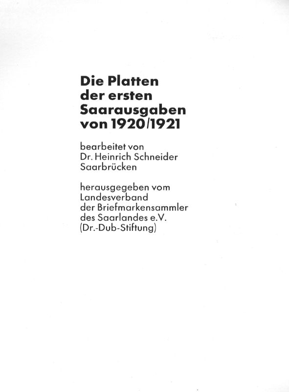 Schneider, Heinrich Die Platten der ersten Saarausgaben von 1920/192