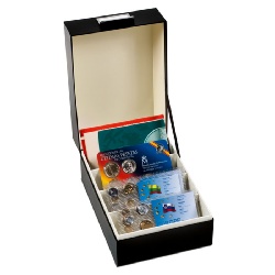 Schwarze Archivbox für Postkarten, Briefe, Karteikarten, Münzsätze, Banknoten und vieles mehr bis zu einem Format von 170 x 120 mm (DIN C6). Flexible Inneneinteilung durch 3 herausnehmbare Trennwände. Die hohe Stabilität bietet dauerhaften Schutz. Metallgriff mit Etikettenfenster für die Kennzeichnung des Inhaltes. Modernes Design.