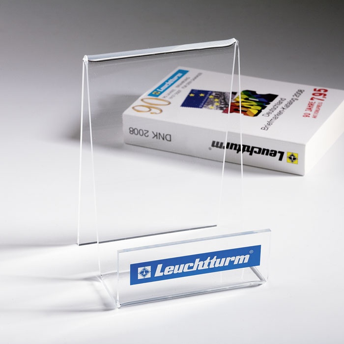 Plexiglas-Aufsteller mit Leuchtturm-Schriftzug