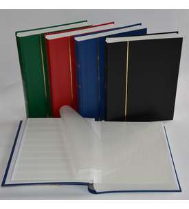 5x A4-Einsteckbuch, 64 weiße Seiten sortierte Farben COMFORT Einsteckbuch A4, unwattiert, 9 Klarsicht-, bzw. Pergamin-streifen pro Seite, Zwischenblätter doppelt, Doppel-Gelenk-Bindung. Lieferbar sortiert in den Farben blau, grün, rot und schwarz.
