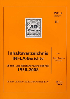 Gesamtnachschlagewerk zu den Veröffentlichungen der INFLA-Berichte seit 1950. Der Autor hat sich der Sisyphusarbeit unterzogen, das Sach- und Stichwortverzeichnisses, das Gotwin Zenker für die INFLA-Berichte von 1950 – 1990 erstellt hatte nun bis 2008 zu ergänzen. Dies kann nicht hoch genug eingeschätzt werden, da es der Durchsicht von 76 Heften unseres Mitteilungsblattes bedurfte.