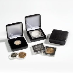 Zur anspruchsvollen Aufbewahrung von gekapselten Münzen empfehlen wir Ihnen diese edlen Münz-Etuis aus Metall. Der seidenmatte, lederähnliche Bezugsstoff sowie die schwarze Samteinlage geben diesen Etuis eine besonders edle Anmutung. Im weißen Deckelkissen befindet sich ein Satinbändchen, das zur Aufnahme eines evtl. vorhandenen Zertifikates dient. Durch Ihren hochwertigen Metallkern ist dieses Etui neben der Aufbewahrung auch perfekt für den sicheren Versand geeignet. Passend für Münzekapseln der Größen 18,19,19,5 und 20, es passen Münzen bis zu einem Durchmesser von 26 mm in dieses Etui. Maße: 65 x 65 x 26 mm