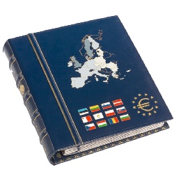 Ringbinder in buchbinderischer Verarbeitung. Edler Kunstledereinband mit eindrucksvoller Rücken- und Deckelprägung (im Schutzkarton). Aufbewahrung der Münzen in allen VISTA- oder OPTIMA-Münzhüllen möglich (Hüllen nicht im Lieferumfang enthalten). Das Album fasst bis zu 9 VISTA-Münzblätter (z.B. 9 x 312494 für 180 2-Euro-Münzen). Außenformat: 245 x 270 mm.