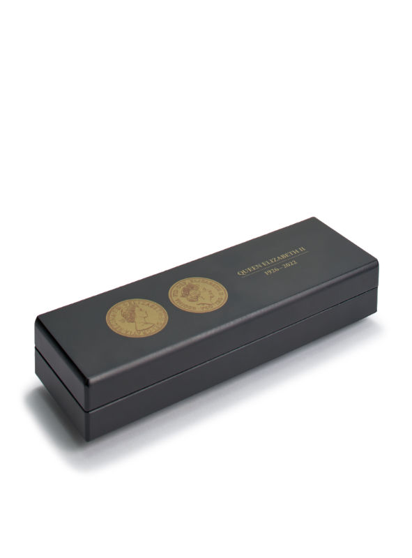 Das Münzetui VOLTERRA „Queen Elizabeth II“ ist deshalb sowohl für Sammler und Anleger bestens geeignet. Es bietet Platz für 5 Sovereigns in Kapseln und wurde speziell dafür gestaltet, um jeweils ein Exemplar der fünf Bildnisse der Queen optisch ansprechend zu vereinen. Es können jedoch auch andere Sovereigns aus früheren Prägeepochen seit 1817 eingelegt werden.