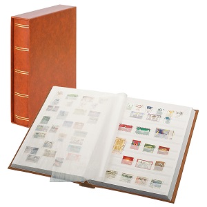 Lindner Einsteckbuch Elegant mit 60 weißen Seiten und passender Schutzkassette Farbe hellbraun Nr. 1162SK-H