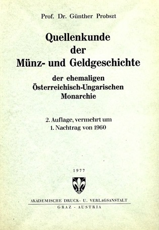 Probszt, Günther Quellenkunde der Münz- und Geldgeschichte der ehemaligen Österreichisch-ungarischen Monarchie