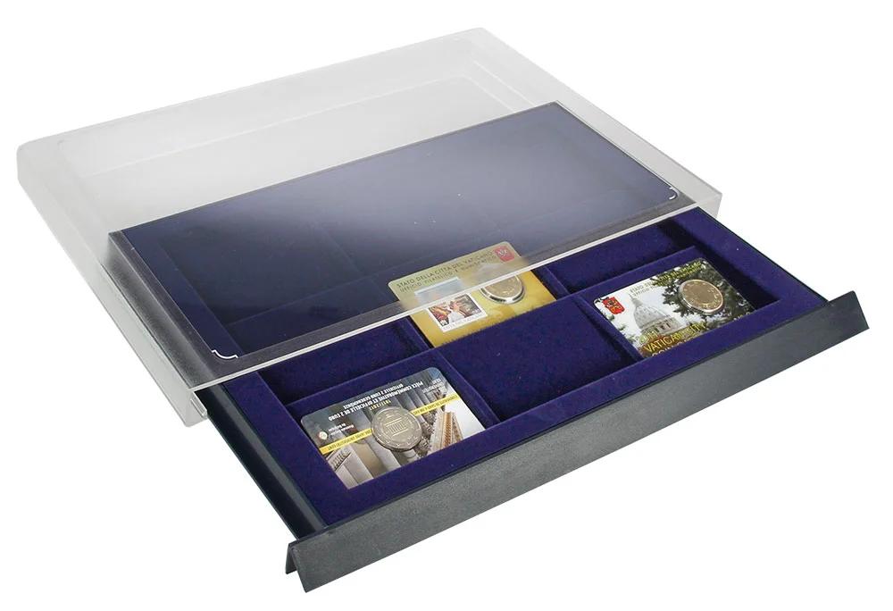 Umfasst Schublade mit Samteinlage und Klarsicht-Schubteil.