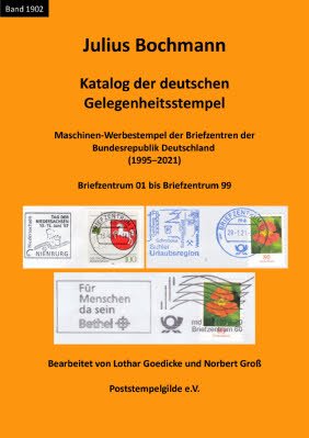 Band 1902 der Neuen Schriftenreihe der Poststempelgilde e.V. im Rahmen des Kataloges der Deutschen Gelegenheitsstempel von JULIUS BOCHMANN. Über 700 Seiten, nur als elektronische Datei zu erhalten.