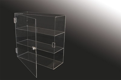 Diese Vitrine ist vollständig aus Acrylglas gefertigt. Sie ist mit einem Schloss und mit einer Flügeltüre ausgestattet und kann gestellt oder gehängt werden. Sie ist ideal für die Präsentation von Taschen- und Armbanduhren
