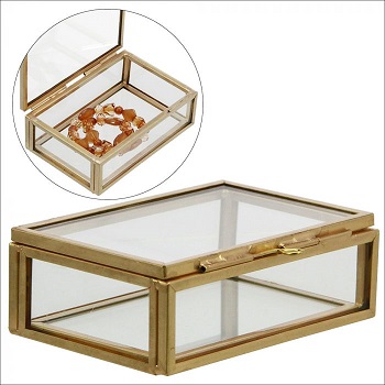 Wunderschöne,handwerklich gefertigte Kleinvitrinen aus Echtglas mit massiven Messing-Einfassungen. Die Glasflächen sind nach alter Handwerks-Kunst in filigrane Messing-Leisten eingelassen. Ideal zur Aufbewahrung von Schmuck und anderen schönen Erinnerungs- und Sammel-Stücken. Alle Wandungen als auch Boden und Deckel der Vitrine sind aus Echtglas. Der Deckel kann mit einem Splint geschlossen werden.