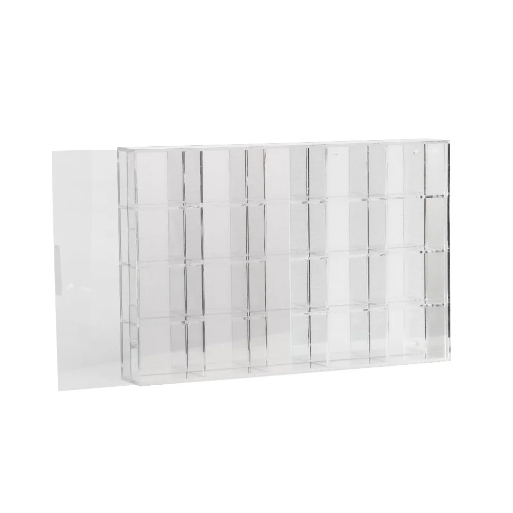 - Vitrine 5059: Außenabmessungen: 350 x 240 x H 45 mm. 24 Fächer à 56 x 56 x H 42 mm (Innenmaße).