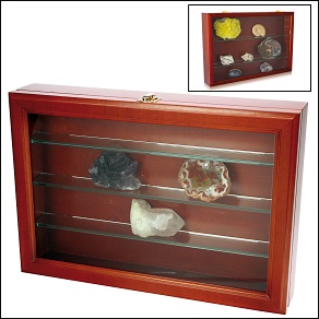 Safe Holz-Vitrine MIDI Nr. 5929 Im kleinen Format 260x375x65mm, mit Klappschloß. Sonstige Ausführung mit 3 variablen Echtglasböden, Echtglasabdeckung usw.