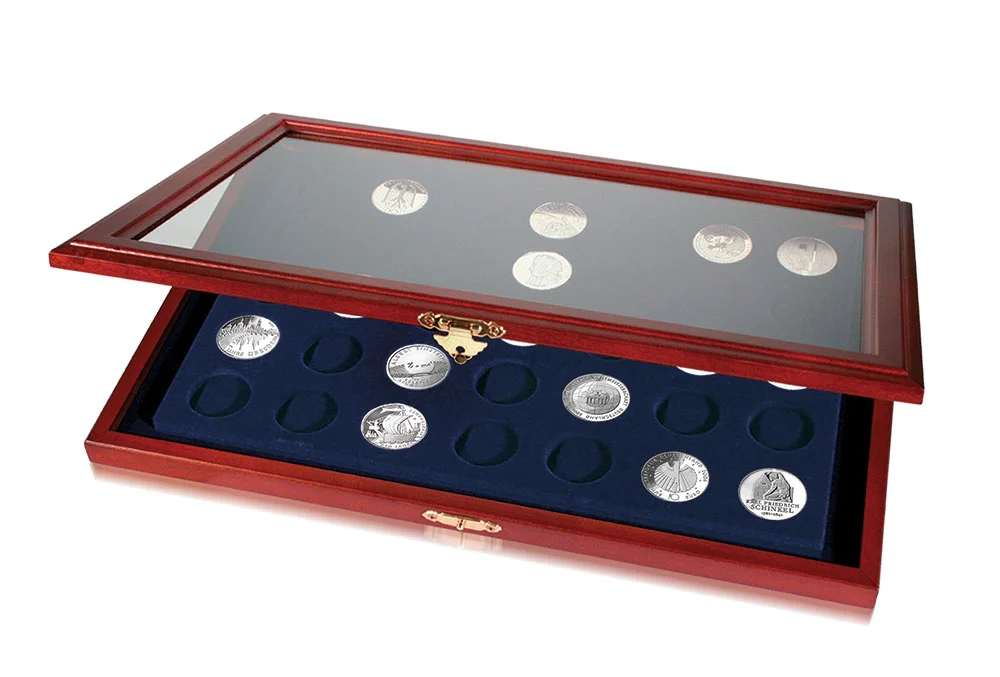 Safe Münzen-Vitrinen mit runden Vertiefungen Nr. 5774 für 23 Münzen à 2 € in Kapseln, z.B für "Erasmus"