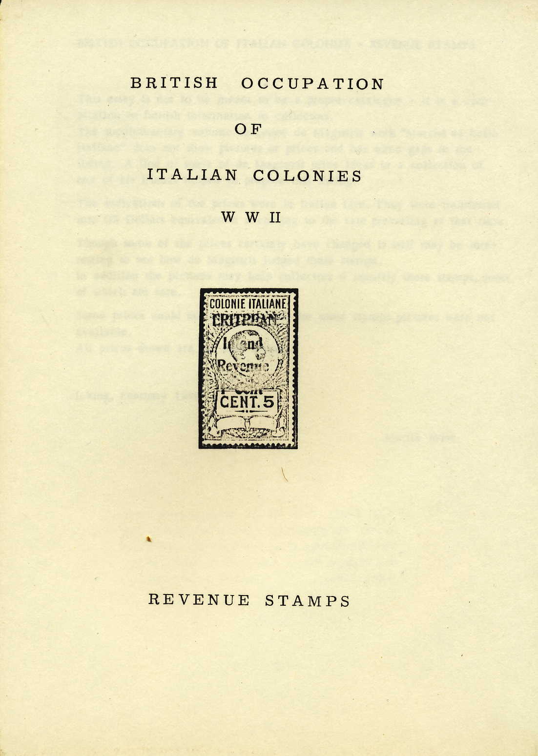 Erler British Occupation of Italian Colonies WWII Revenue Stamps