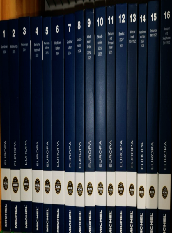 Komplette Garnitur von 16 Bänden der Michel Europa-Kataloge (Blaue Garnitur)