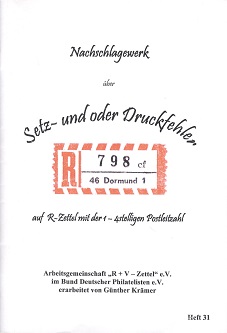 Krämer, Günther Nachschlagewerk über Setz- und oder Druckfehlern auf R-Zettel mit 1 - vierstelliger Postleitzahl Auflage 2008, 42 Seiten, incl. 1. + 2. Nachtrag, Format A5, broschiert.