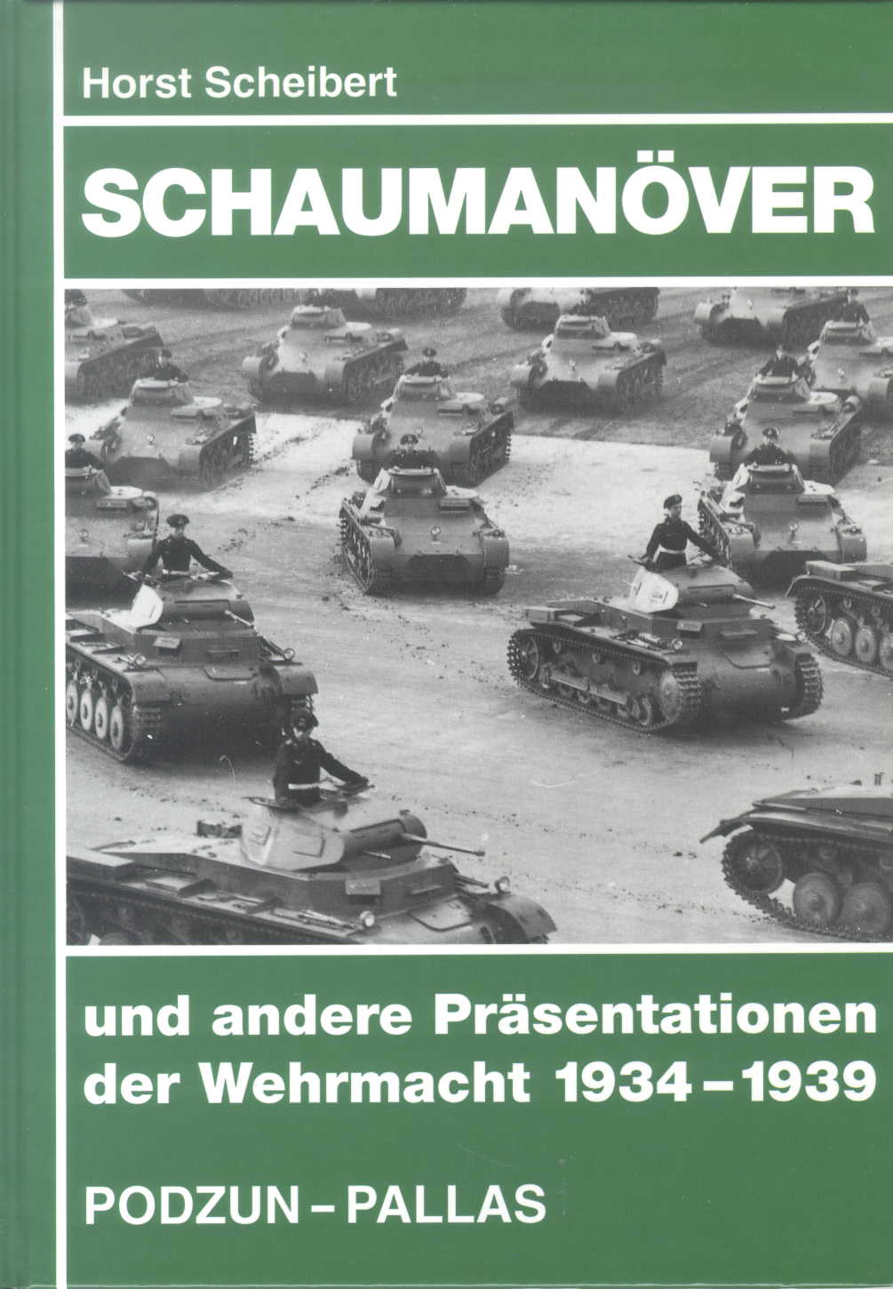 Scheibert, Horst Schaumannöver und andere Präsentationen der Wehrmacht 1934-39 (Podzun-Pallas) 1. Auflage 1995 80 Seiten mit zahlreichen fotografischen s/w Abbildungen. Farbig illustrierter Hardcover, gebunden. Format 17x24,5cm.