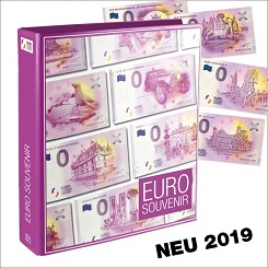 Inkl. 59 transparenten Einsteckblättern und farbigen Vordrucken aller erschienenen deutschen 0-Euro-Banknoten 2019.