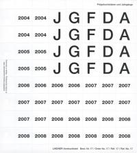 Perforiertes Vordruckblatt zur Kennzeichnung des karat-Münzenblattes K 8, mit den Jahreszahlen 2004-2008 und deutschen Prägebuchstaben