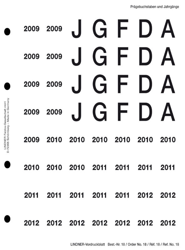 Lindner Perforiertes Vordruckblatt 2009-2012 Nr. 18