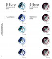 Vordruckblatt mit den farbigen Abbildungen der 5 Euro-Sammlermünzen 2016 und 2017 (jew. alle 5 Prägestätten) inkl. karat-Münzblatt K3.