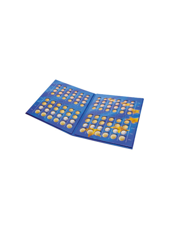 Das Münzalbum PRESSO „Euro-Collection„ zählt zu den beliebtesten Sammelsystemen für Euro-Münzen. Die unkomplizierte Handhabung in Verbindung mit der stabilen Verarbeitung und hochwertigen Gestaltung macht das Album, in das insgesamt 12 Euro-Kursmünzensätze von einem Cent bis 2 Euro eingedrückt werden können, zu einem zuverlässigen Sammel-Begleiter seit der Einführung des Euro.