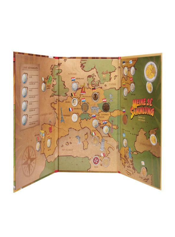 Dank clever designierter Aussparungen können die Münzen kinderleicht eingedrückt werden, die jeweiligen Münzen der Länder sind bereits als Abbildung in den Aussparungen zu sehen, sodass das Sammeln zum interaktiven Abenteuer wird.
