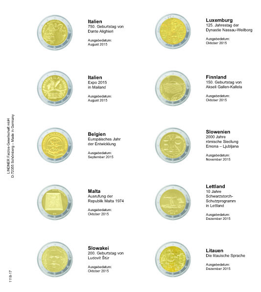 Lindner 2€ Vordruckblatt 2015 Nr. 1118-17