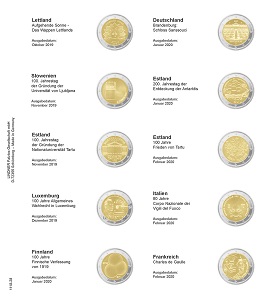 Lindner Karat Vordruckblatt für 2 Euro Gedenkmünzen Lettland 2019 - Frankreich 2020 Nr. 1118-28