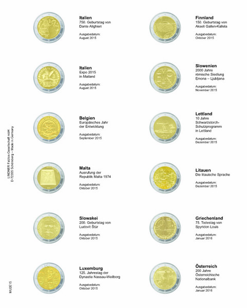 Lindner Multi Collect Vordruckblatt 2€ 2015-2016 Nr. MU2E15