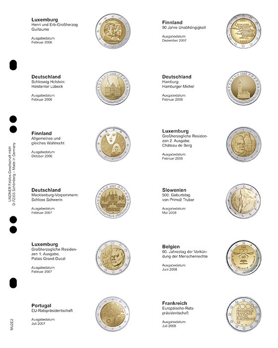 Lindner Multi Collect Vordruckblatt für 2 € MU2E2 Gedenkmünzen: Luxemburg 2006 - Frankreich 2008