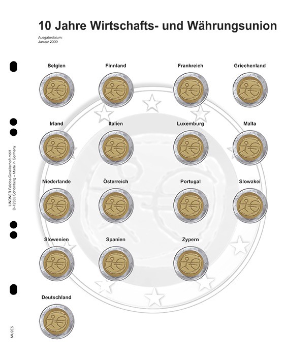 Lindner Multi Collect Vordruckblatt für 2 € MU2E5 Gedenkmünzen: Gemeinschaftsausgabe 10 Jahre WWU
