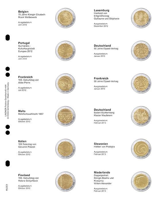Lindner Multi Collect Vordruckblatt MU2E9 für 2 € Gedenkmünzen: Belgien 2012 - Niederlande 2013