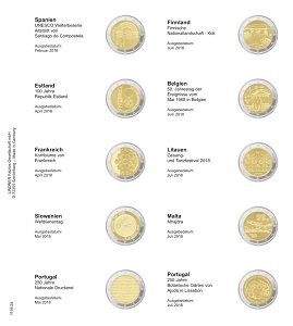 Lindner Vordruckblatt 2 EURO Nr. 1118-24 Gedenkmünzen ab Spanien 2018-Portugal 2018