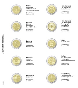 Lindner Vordruckblatt 2 EURO Nr. 1118-25 Gedenkmünzen ab Italien 2018-Luxemburg 2018