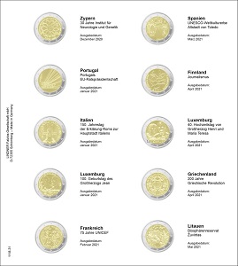 Lindner Vordruckblatt für 2 Euro-Gedenkmünzen Zypern 2020 bis Litauen 2021 Nr. 1118-31