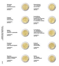 Lindner Vordruckblatt für 2 Euro-Gedenkmünzen: Slowakei 2023 - Italien 2023 Bestell-Nr. 1118-37