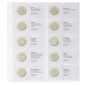 Lindner Vordruckblatt karat für 2 Euro-Gedenkmünzen: Malta 2023 - Estland 2024 Nr. 1118-40