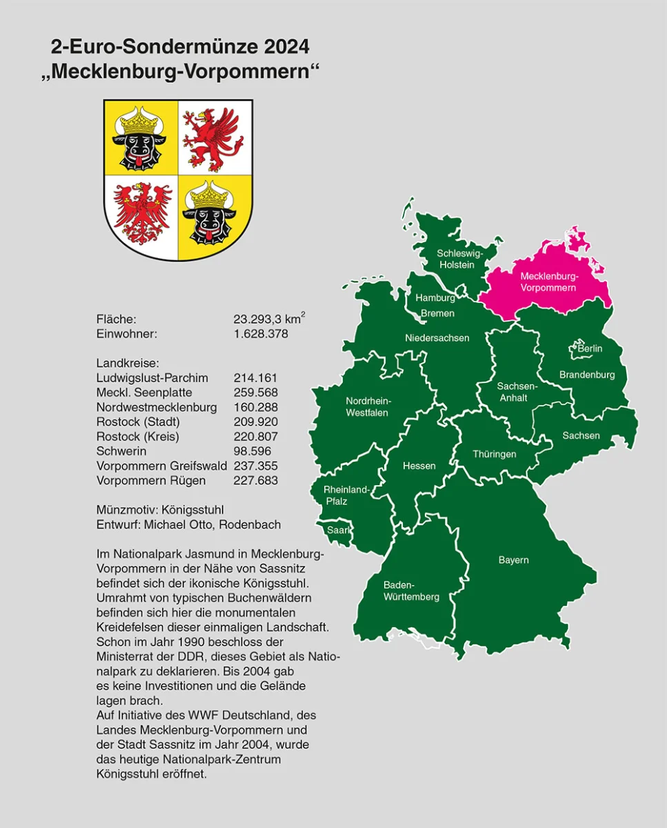 Für TOPset-Album 2€-Bundesländer" (Nr. 7821)Inkl. farbigem Vordruckblatt mit Erläuterungen (für die 5 Prägeanstalten)."