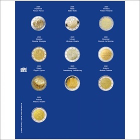 Safe TOPset Album für 2€ Nachtrag 2020 Nr. 7302-34 für TOPset Album 7302 (2€-Münzen). Für 2€ Münzen in Kapseln. Die TOPset-Blätter bestehen aus einem transparenten Eindrückblatt (die Münzen sind beidseitig sichtbar) und einem farbigen Vordruckblatt. Blatt für Jahrgang 2020.