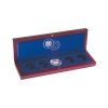 Leuchtturm Holz-Münzetui HMEUIFWM2 für 5x10-Euro-Gedenkmünzen Fußball WM 2006" in Original-Kapsel hochwertiges Münzetui in mahagonifarbener Holzmaserung. Deckelkissen in dunkelblauer Seide, Bodenteil mit vorgeformten Vertiefungen."