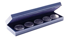 Safe Münzenetui für 5x 1€/2€/5€/10€/20€ 242 x 67 x 35mm Nr. 7918 Dunkelblaues Etui, mit Silber-Schmuckprägung und Hartschaumeinlage, Münze eindrücken, fertig! Geeignet für 5x2€ oder 5x10€ Münzen und für alle 5€-Münzen