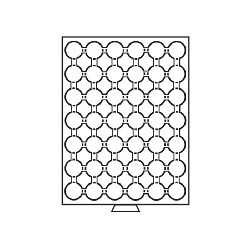 Diese Münzbox ist mit einer hellroten Einlage ausgestattet. Die  Schublade für diese Einlage ist in einem grauen Ton gehalten. Diese Münzboxen sind speziell für Leuchtturm-Münzkapseln geeignet, Sie können problemlos die Kapseln einlegen und wieder herausnehmen. Die 42 runden Fächer sind für Münzkapseln bis zu einem Außendurchmesser von 30,5 mm (CAPS 24,5) verwendbar. Die Kapsel CAPS 24,5 ist z.B. für folgende Münzen vorgesehen: US Quarters, 1 Sfr. oder für die 1 Euro Münzen. Außenformat (B/L/H) 236 x 303 x 20 mm.