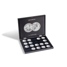 Hochwertige, schwarze Münzkassette zur Unterbringung von 20 Krügerrand Silbermünzen (1 Oz.) in LEUCHTTURM Kapseln (CAPS39). 1 Einlage mit