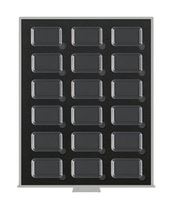 LINDNER MÜNZBOX STANDARD BLACK SAMT FÜR 18 RECHTECKIGE MÜNZKAPSE