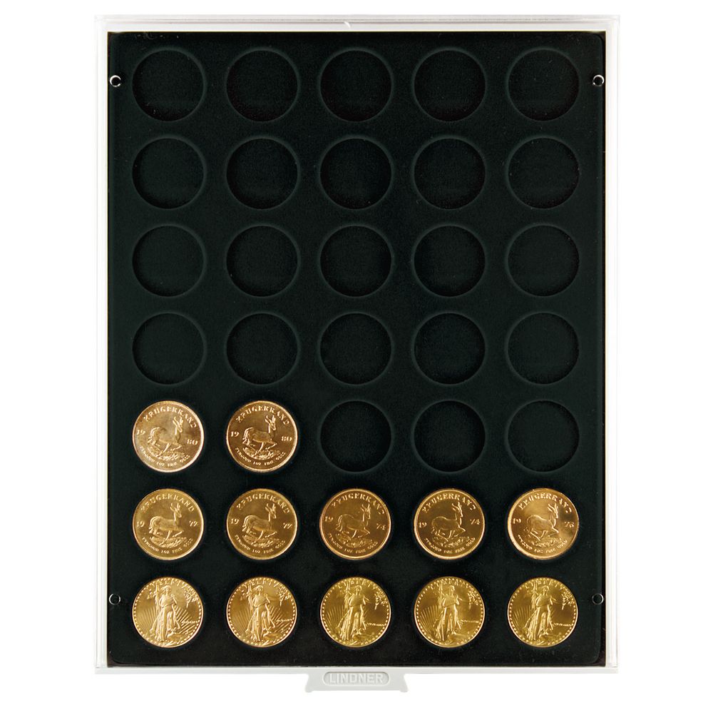 Lindner Münzenbox CARBO 2111C mit 35 runden Vertiefungen für 10€/20€ Münzen mit Ø 32,5mm