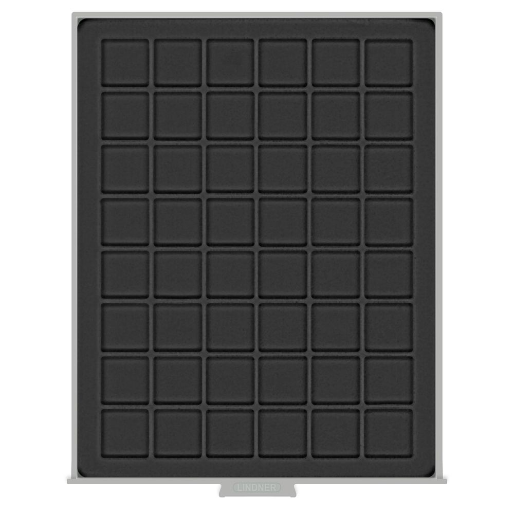 Lindner Münzenbox CARBO 2148C mit 48 quadratischen Vertiefungen Für Münzen/Münzenkapseln mit Ø 30 mm-Grau / schwarze EinlageMünzenboxen mit quadratischen Vertiefungen Farbe Grau / schwarze EinlageGeeignet für Lose Münzen (sortiert)