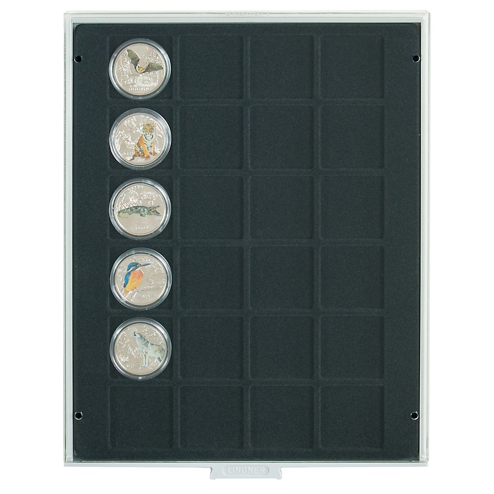 Lindner Münzenbox mit 24 quadr. Vertiefungen b. 42mm Ø Nr.2124C