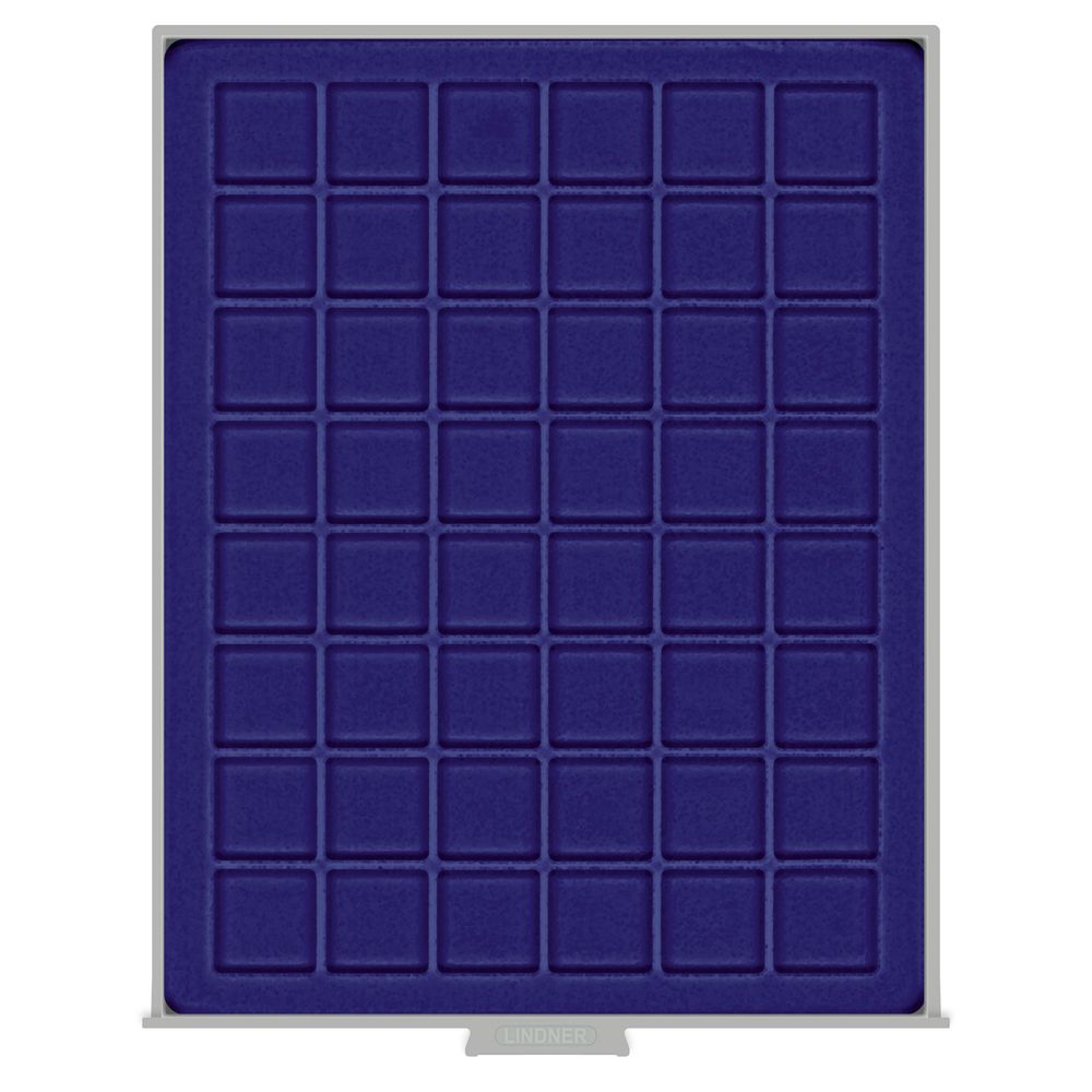 Lindner Münzenbox mit 48 Quadrat. Vertiefungen b. 30mm Ø Nr.2148M Marine