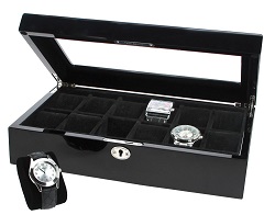 Safe Edle, schwarze Kassette für Uhren mit 12 Uhrenhaltern Nr. 2